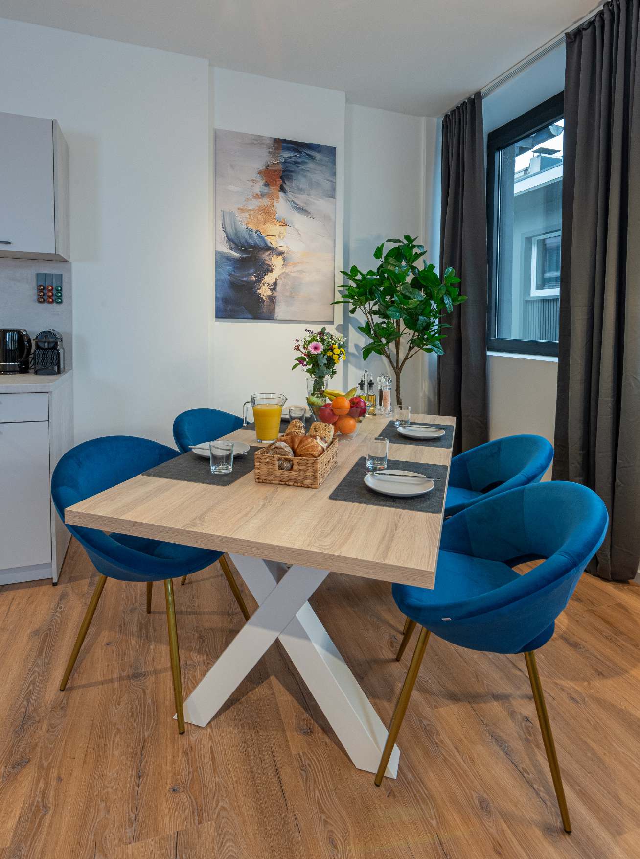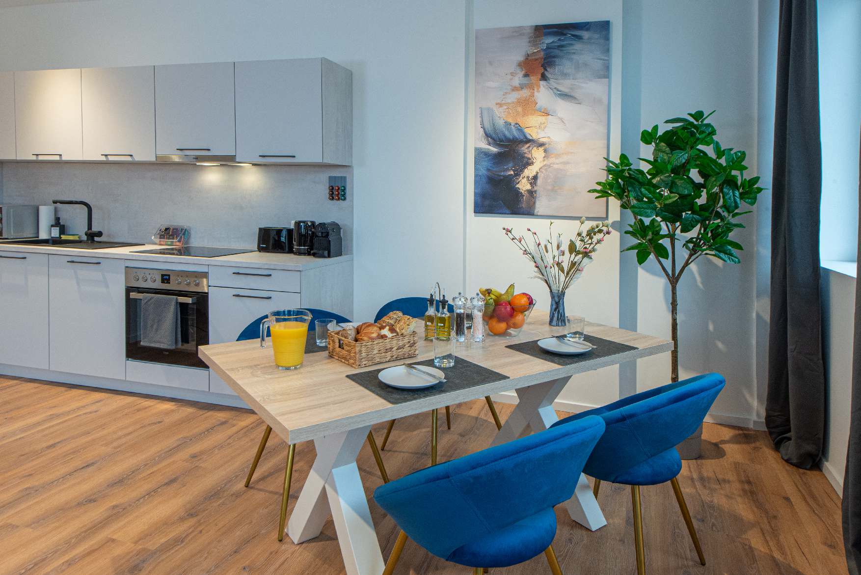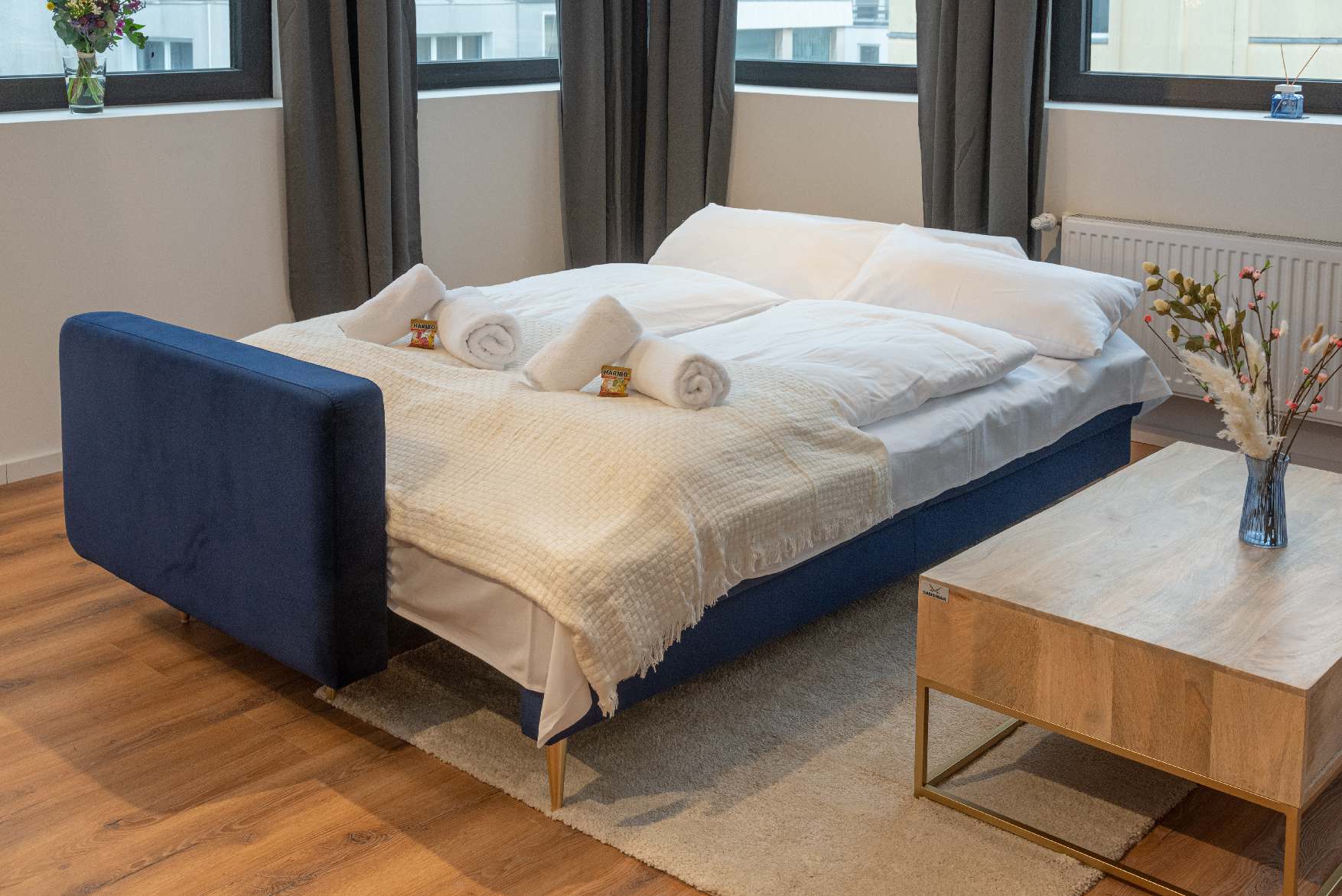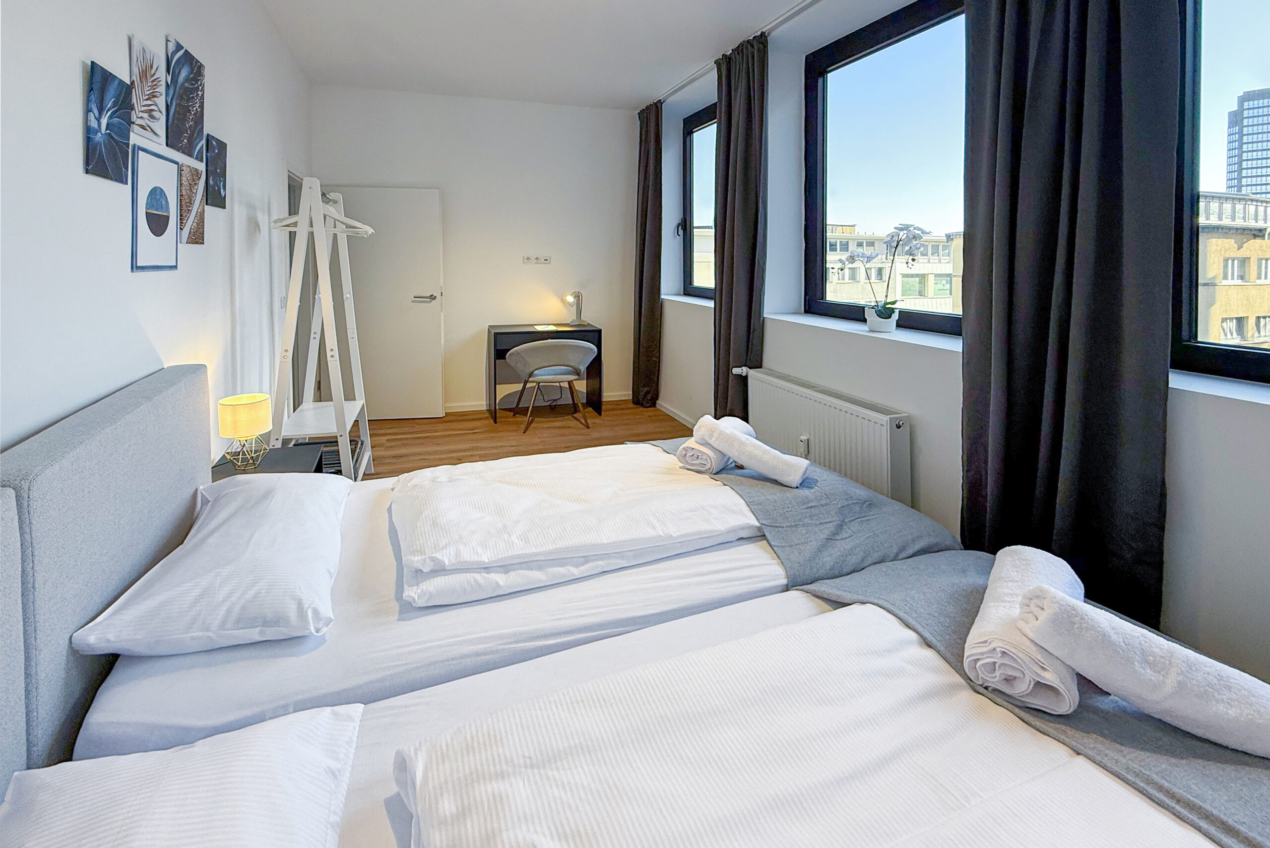 Neues und komplett renoviertes Apartment für bis zu vier Personen beim Kennedyplatz: ein Schlafzimmer mit zwei Einzel-Boxspringbetten, die als Kingsize-Doppelbett arrangiert sind, aber auch voneinander getrennt gestellt werden können, eine Doppel-Schlafcouch mit 1,40 m Breite, ein Arbeitsplatz, voll ausgestattete Küche inkl. Waschtrockner, Bad mit Regendusche, kostenfreies Streamen von Netflix, gelegen in der 3. Etage (kein Aufzug), öffentliche Parkmöglichkeiten in unmittelbarer Umgebung (z. B. Centralgarage Kennedyplatz für 18 € pro Tag), umliegend Bäcker, Cafés und Restaurants.